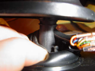 shown in the following pictures and re-route the 15 wires needed for the joystick handle.